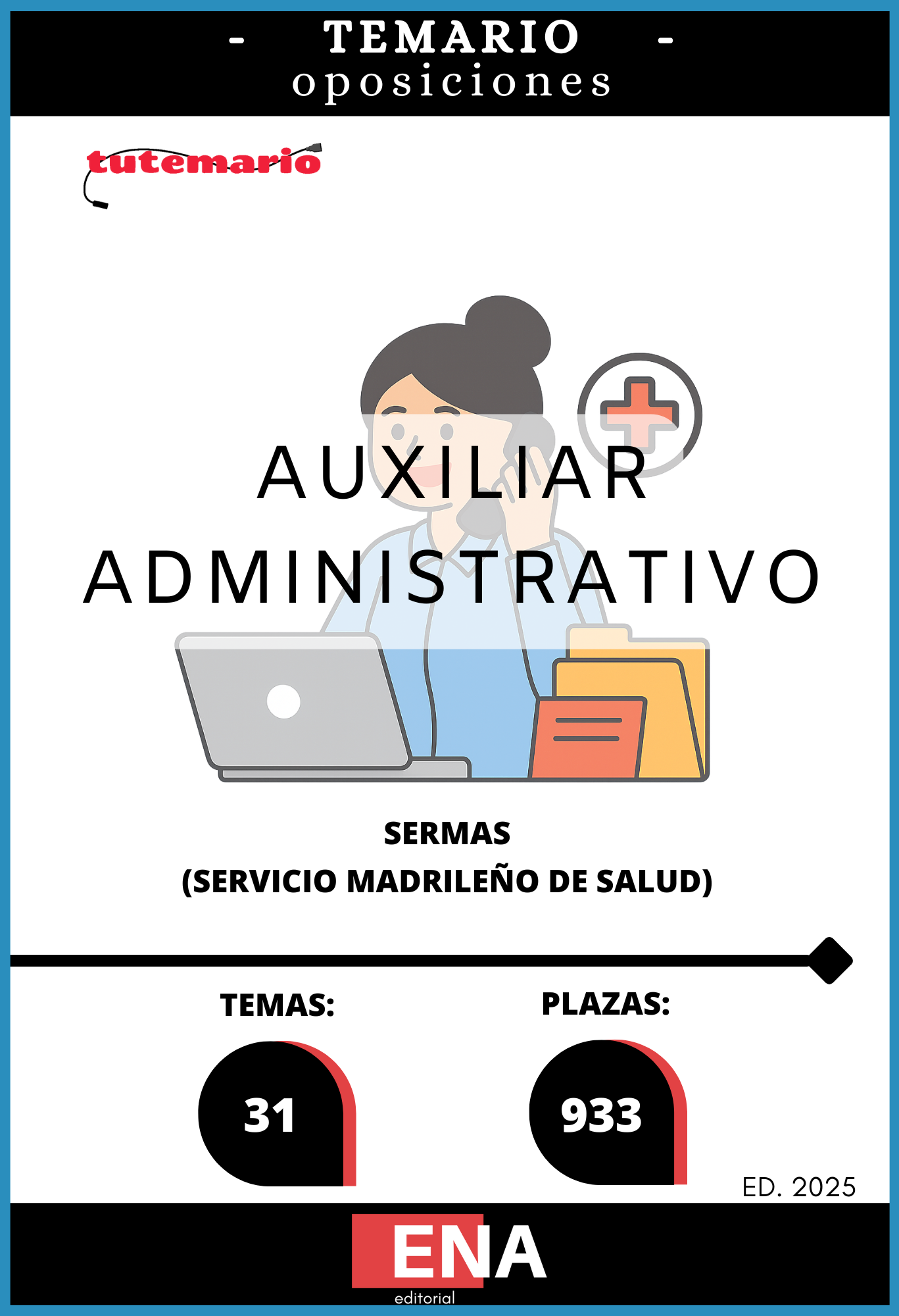 Vamos a desarrollar este LIBRO TEMARIO, sobre los 31 temas solicitados para el estudio de la fase de oposición, de las 933 plazas convocadas por el Servicio Madrileño de Salud, por resolución de 23 de junio de 2025, de la Dirección General de Recursos Humanos y Relaciones Laborales del Servicio Madrileño de Salud, por la que se convocan pruebas selectivas por el turno libre para el acceso a la condición de personal estatutario fijo en la categoría de Grupo Auxiliar Administrativo de Función Administrativa, Grupo C, Subgrupo C2, del Servicio Madrileño de Salud.