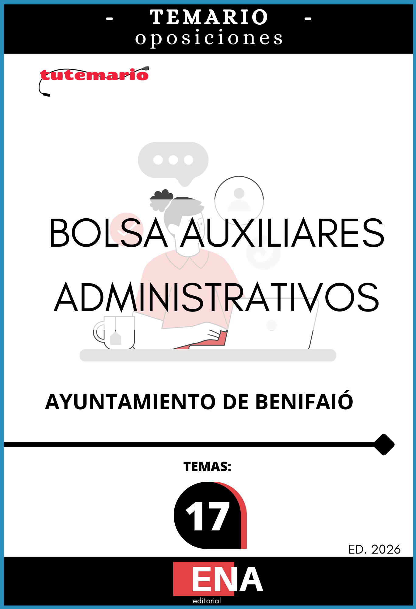 LIBRO TEMARIO, sobre los 17 temas solicitados para el estudio de la convocatoria y proceso de selección para la formación de una bolsa de trabajo del grupo C, subgrupo C2, adscrito a la administración general, auxiliar administrativo/a del Ayuntamiento de Benifaió, publicada en el Boletín Oficial de la Provincia de Valencia el 02 de marzo de 2026.