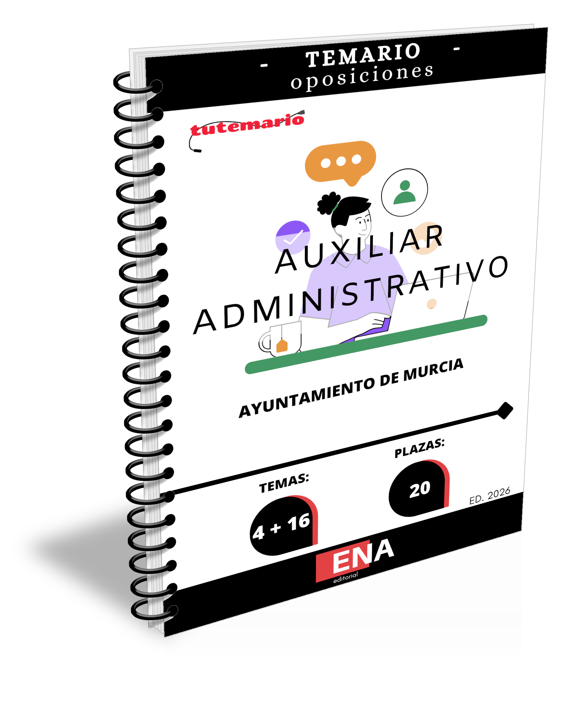 LIBRO TEMARIO, sobre los 20 temas solicitados para el estudio de la oposiciones de 20 plazas de auxiliar administrativo en propiedad, por concurso-oposición, incluidas en la Oferta de Empleo Público para el año 2025; aprobado por Acuerdo de Junta de Gobierno de fecha 20 de febrero de 2026 y publicado en el BORM de 28 de febrero de 2026.