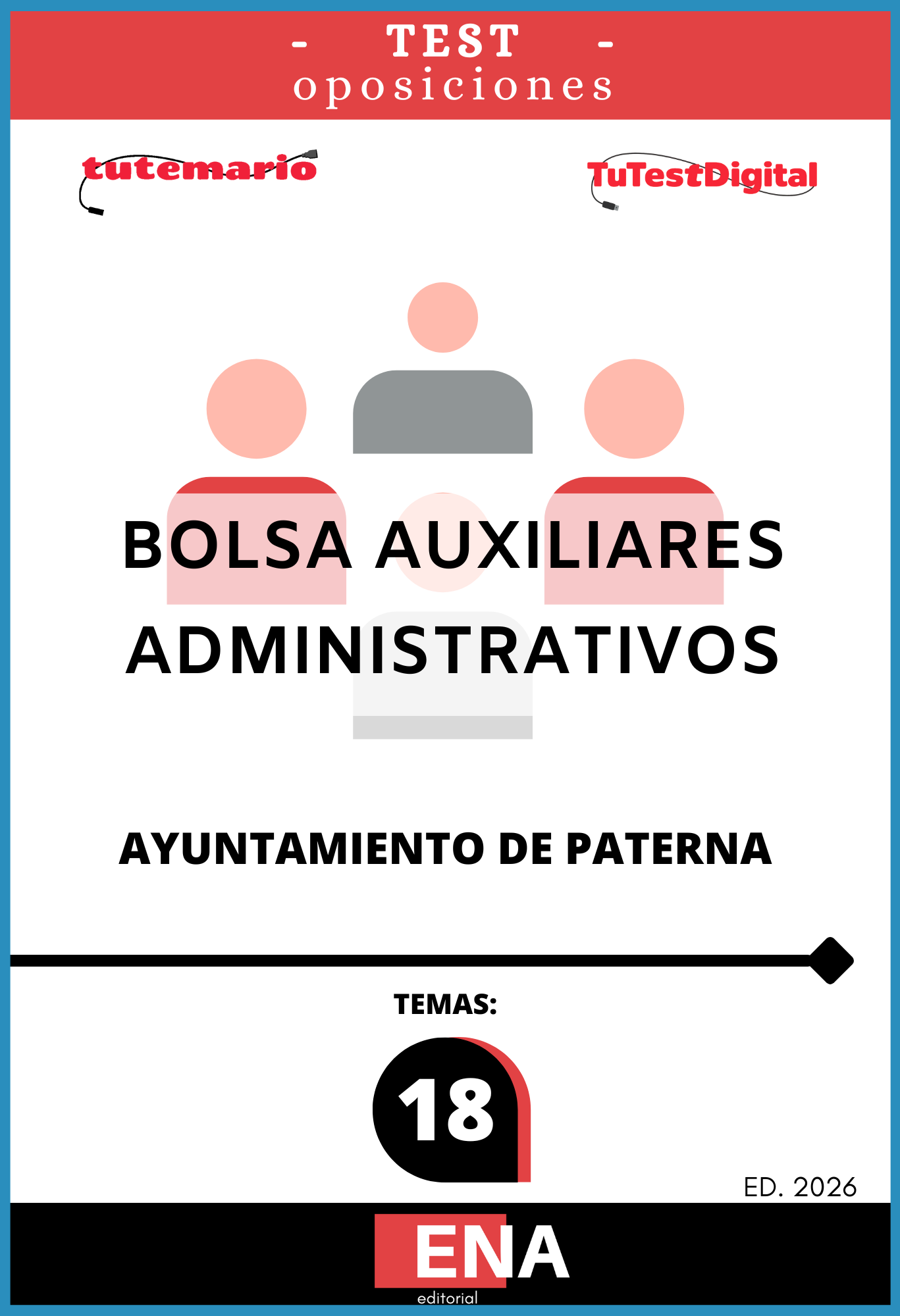 Vamos a desarrollar en este LIBRO DE TEST, con preguntas (DE CUATRO OPCIONES DE RESPUESTA), sobre los 18 temas solicitados para el estudio de la convocatoria y proceso de selección para la formación de una bolsa de trabajo de auxiliar administrativo/a, pertenecientes al grupo C, subgrupo C2, escala de administración general, subescala de auxiliar administrativo/a del Ayuntamiento de Paterna. Por acuerdo de la Junta de Gobierno Local, en sesión ordinaria celebrada el día 20 de noviembre de 2025 y publicada en el Boletín Oficial de la Provincia de Valencia el 27 de noviembre de 2025.