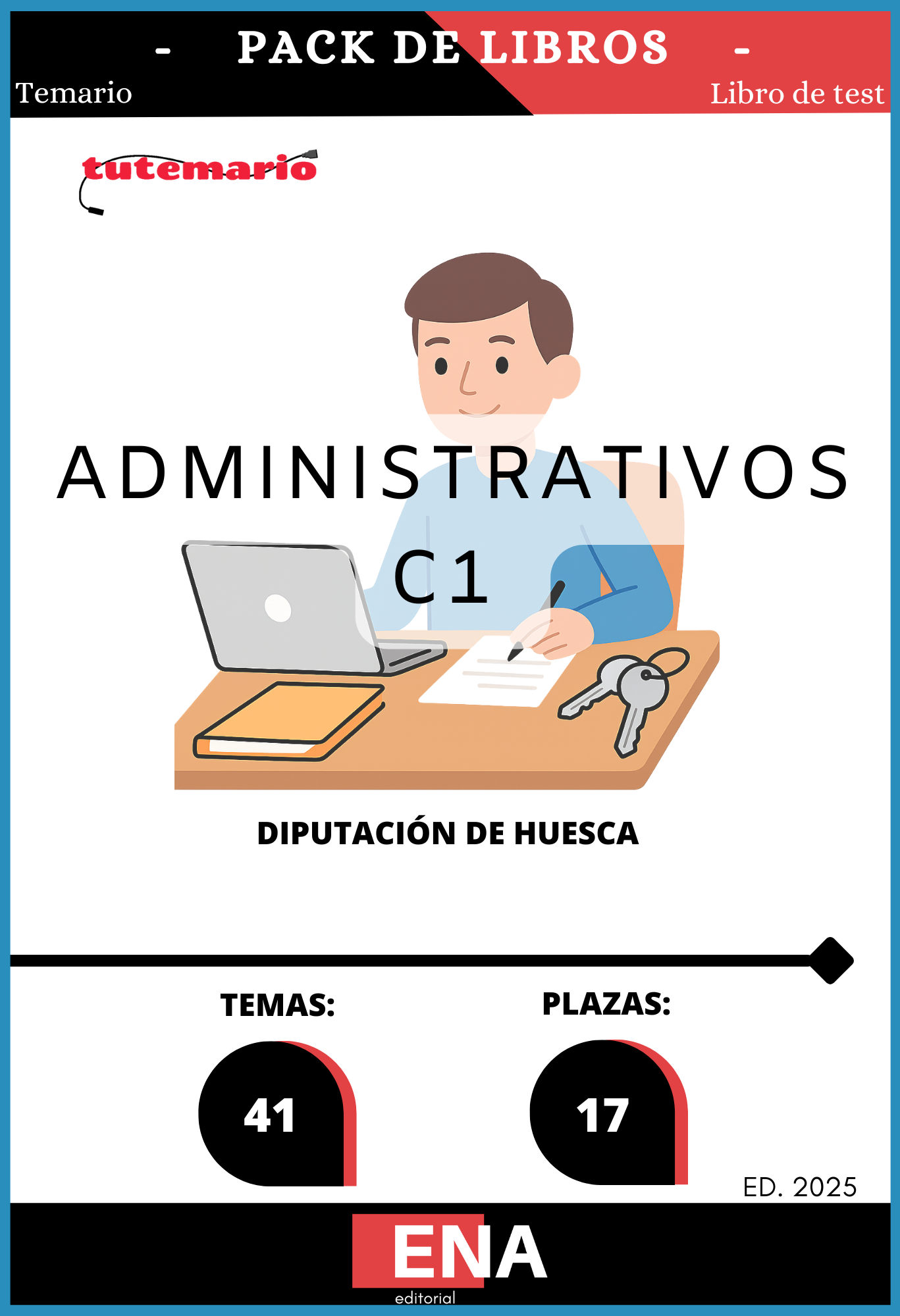 Vamos a desarrollar en este Pack de LIBRO TEMARIO y LIBRO TEST, con preguntas (DE CUATRO OPCIONES DE RESPUESTA), sobre los 41 temas solicitados para el estudio de la fase de oposición para las 17 plazas convocadas por la Diputación de Huesca, de conformidad con la Oferta de Empleo Público del año 2024, aprobada por Decreto núm. 3807, de 13 de noviembre de 2024 y la Oferta de Empleo Público de 2025, aprobada por Decreto núm. 1244, de 21 de marzo de 2025, es objeto de la presente convocatoria, que se publicará en el portal web de la Diputación Provincial de Huesca (www.dphuesca.es/convocatoriaempleo) y en el Boletín Oficial de la Provincia, la provisión, mediante oposición, de diecisiete plazas de Administrativo, encuadradas en la Escala de Administración General, Subescala Administrativa, Grupo C, Subgrupo C1.