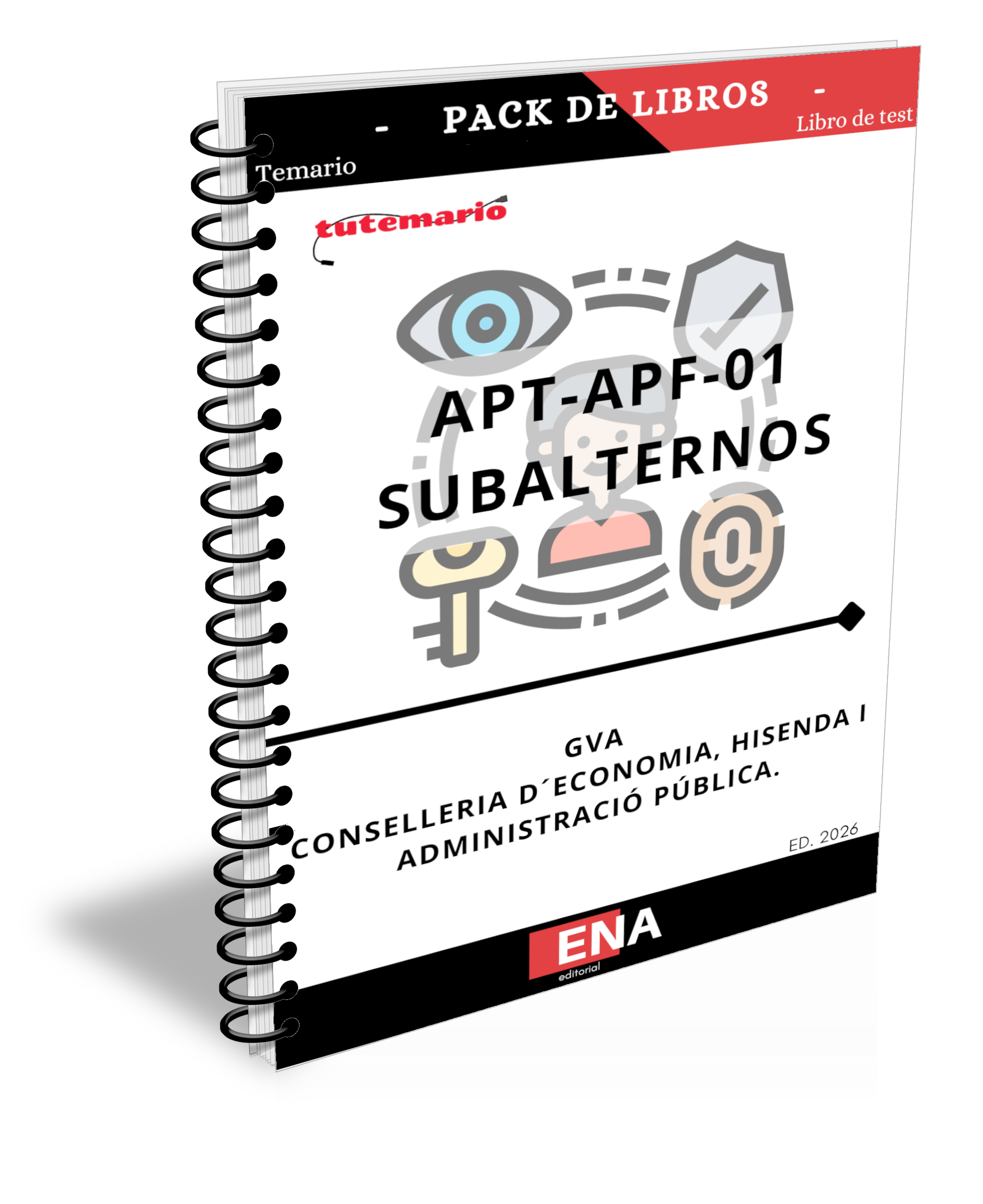 Vamos a desarrollar en este Pack de LIBRO TEMARIO y LIBRO DE TEST, con preguntas (DE CUATRO OPCIONES DE RESPUESTA), sobre los 7+8 temas solicitados para la fase de oposición convocada por de la Conselleria de Economía, Hacienda y Administración Pública, para las pruebas selectivas de acceso a la agrupación profesional funcionarial de subalternos, APT-APF-01, turno libre general, personas con diversidad funcional y enfermedad mental, por el sistema de oposición, correspondientes a la oferta de empleo público de 2026 para personal de la Administración de la Generalitat.