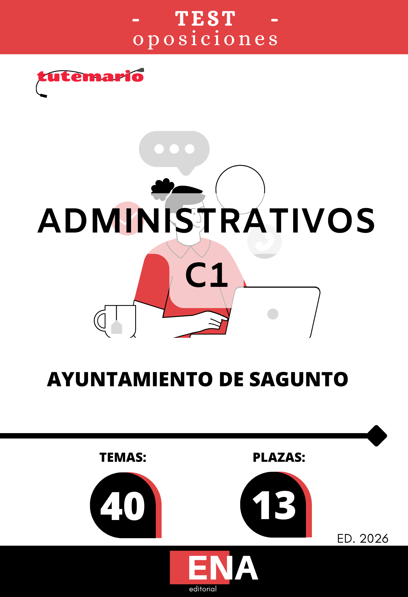 Vamos a desarrollar en este LIBRO DE TEST, con preguntas (DE CUATRO OPCIONES DE RESPUESTA), sobre los 40 temas solicitados para el estudio del primer ejercicio de la fase de oposición, de las oposiciones convocadas por el Excelentísimo Ayuntamiento de Sagunto para cubrir en propiedad, mediante el sistema de concurso oposición, trece plazas de Administrativo de Administración General incluidas en la OEP de 2025, seis por turno libre y siete por promoción interna. Dichas plazas se encuadran en el Grupo C, subgrupo C1.
