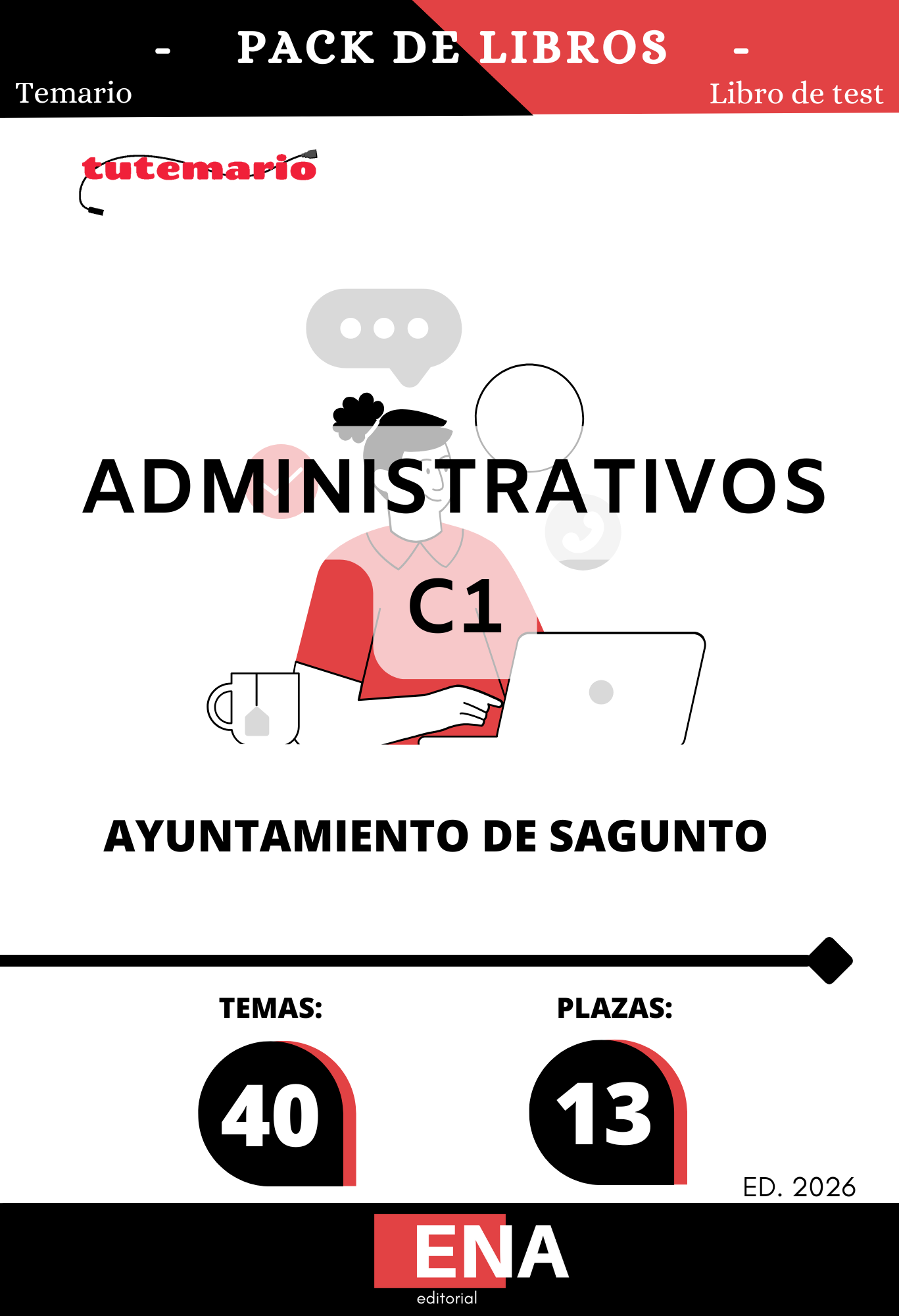 Vamos a desarrollar en este Pack de LIBRO TEMARIO y LIBRO DE TEST, con preguntas (DE CUATRO OPCIONES DE RESPUESTA), sobre los 40 temas solicitados para el estudio del primer ejercicio de la fase de oposición, de las oposiciones convocadas por el Excelentísimo Ayuntamiento de Sagunto para cubrir en propiedad, mediante el sistema de concurso oposición, trece plazas de Administrativo de Administración General incluidas en la OEP de 2025, seis por turno libre y siete por promoción interna. Dichas plazas se encuadran en el Grupo C, subgrupo C1.