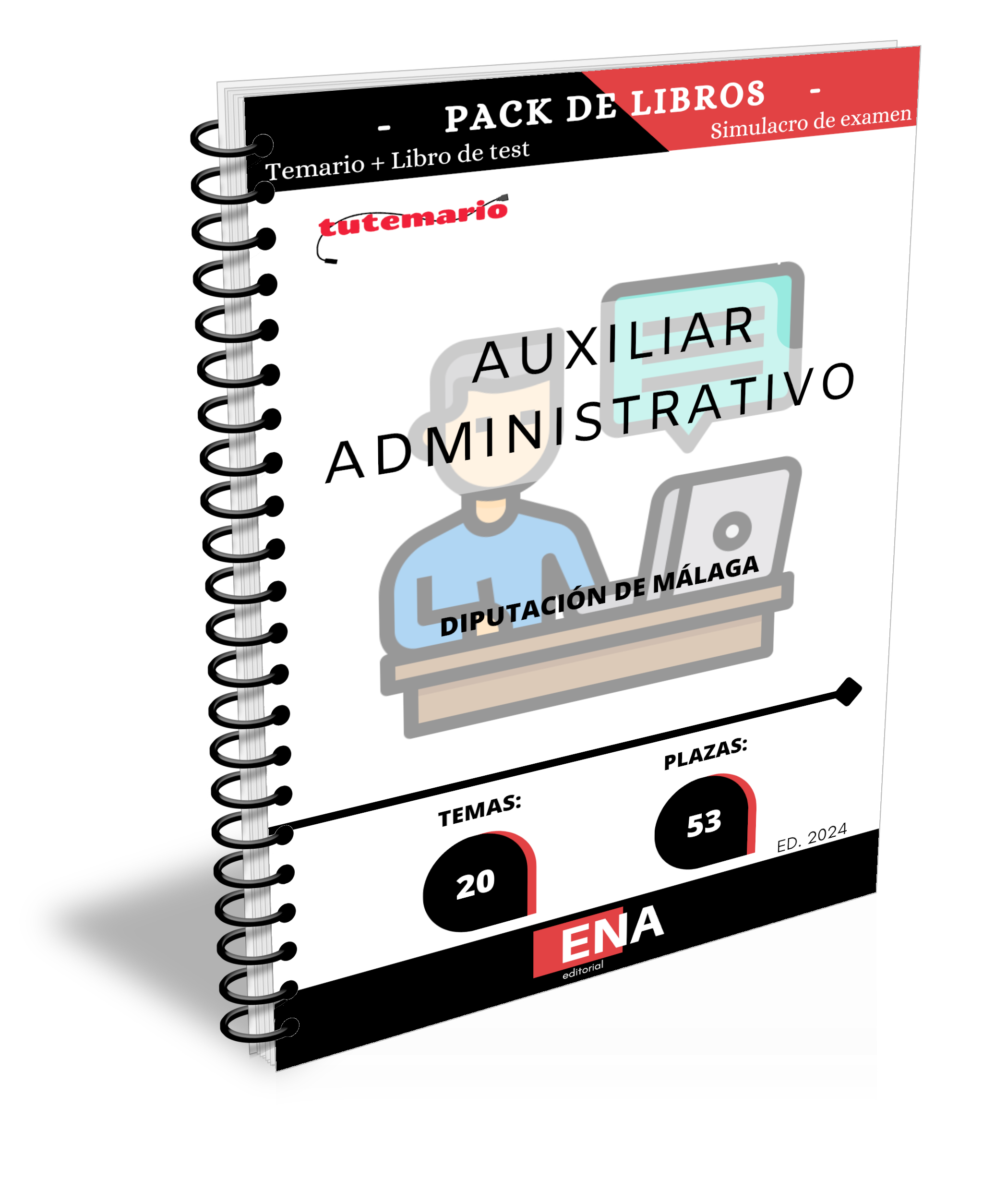 Vamos a desarrollar en este Pack de LIBRO TEMARIO y LIBRO TEST, con preguntas (DE CUATRO OPCIONES DE RESPUESTA),sobre los 20 temas solicitados para el estudio de la fase de oposición de las 53 plazas convocadas por la Diputación de Málaga y publicadas en el Boletín Oficial de la Provincia de Málaga el 11/12/2023, para la selección mediante concurso-oposición de las plazas vacantes en la plantilla de personal de la excelentísima diputación provincial de málaga, incorporadas a las oeps de los años 2020, 2021, 2022 y 2023, correspondientes a la tasa de reposición.