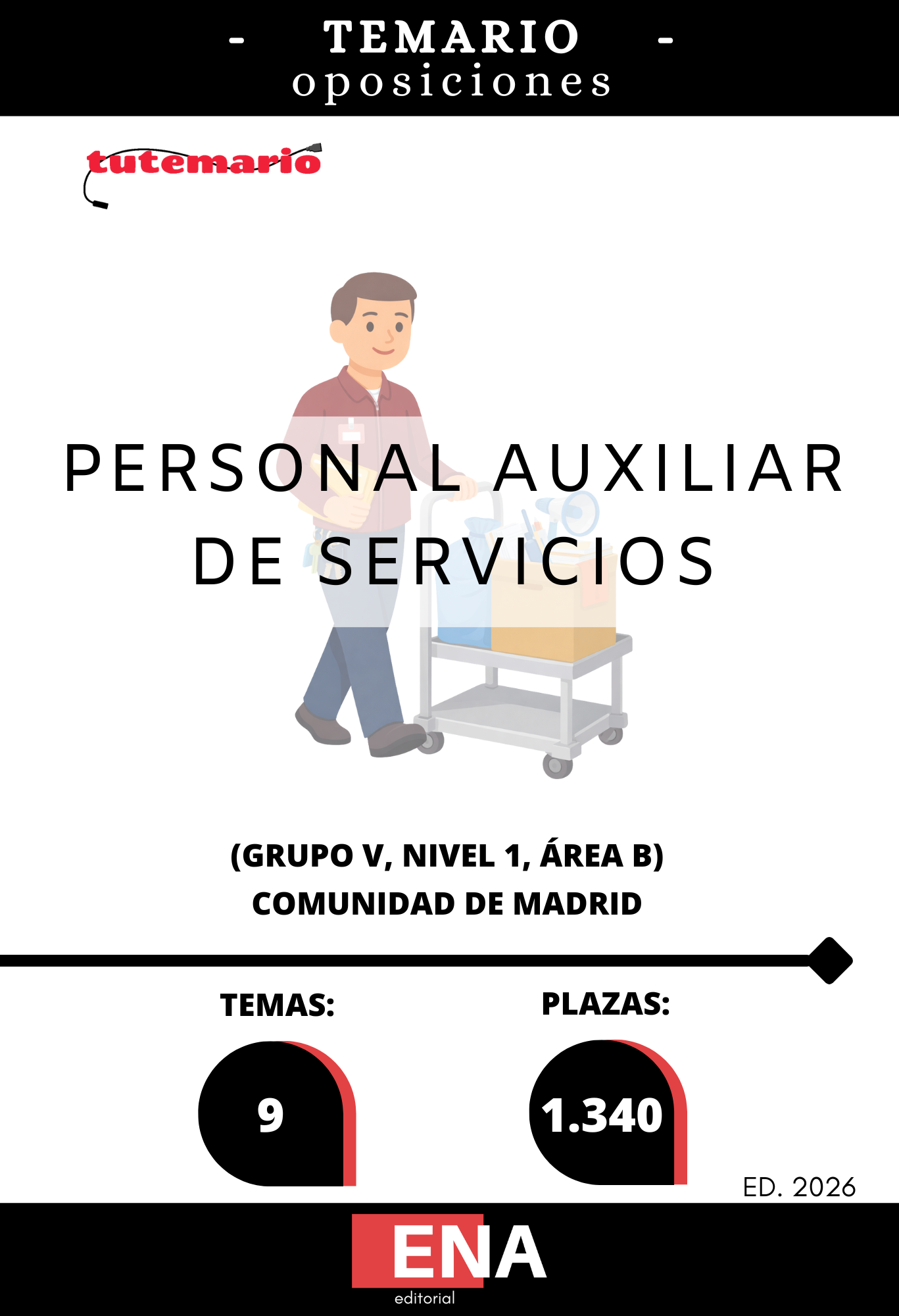 Vamos a desarrollar en este LIBRO TEMARIO, sobre los 9 temas solicitados en las oposiciones a 1.340 PLAZAS DE Personal Auxiliar de Servicios de la Comunidad de Madrid, GRUPO V, NIVEL 1, ÁREA B, publicadas en el BOCM.