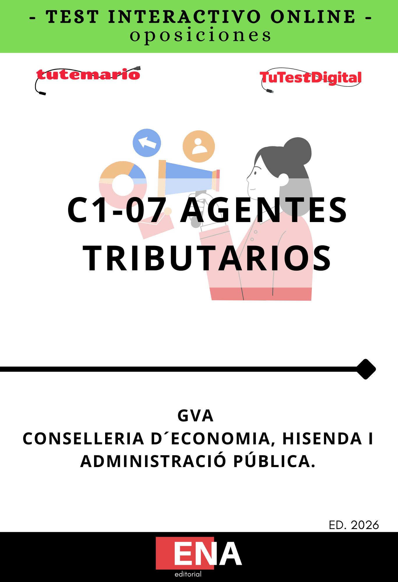 TEST, con preguntas (DE CUATRO OPCIONES DE RESPUESTA), sobre los 12 + 20 = 32 temas, solicitados para la oposición de las plazas convocadas por la GVA de aprobación de la oferta de empleo público de 2026 para la Administración de la Generalitat. Conselleria de Justícia i Administració Pública, por la que se convocan pruebas selectivas de acceso al cuerpo de agentes tributarios de la Generalitat, C1-07, cuerpo especial, turno libre y personas con discapacidad, por el sistema de oposición, correspondientes a la oferta de empleo público de 2026 para personal de la Administración de la Generalitat.