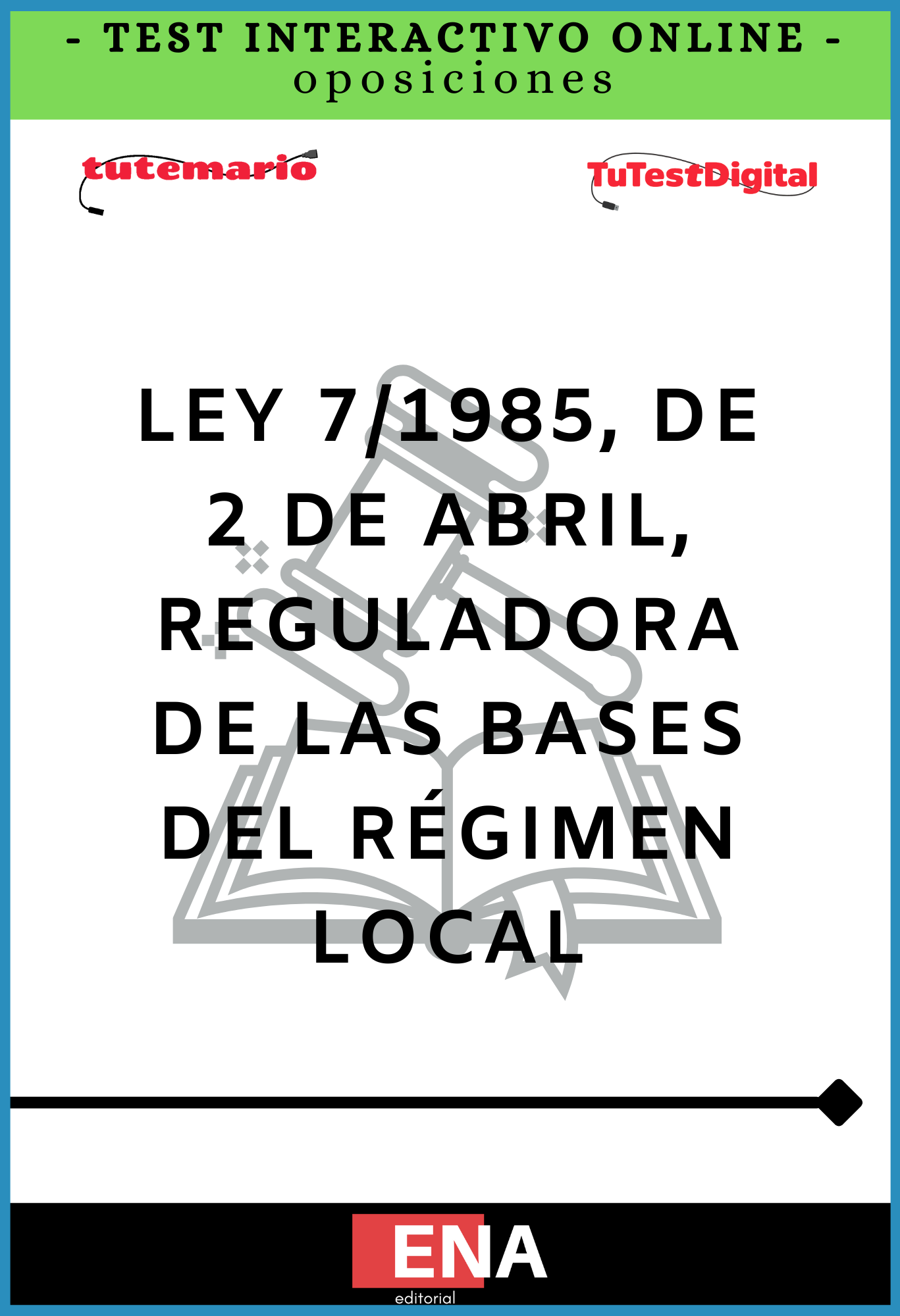 TEST INTERACTIVO, con preguntas (DE CUATRO OPCIONES DE RESPUESTA), sobre la Ley 7/1985, de 2 de abril, Reguladora de las Bases del Régimen Local (LBRL)