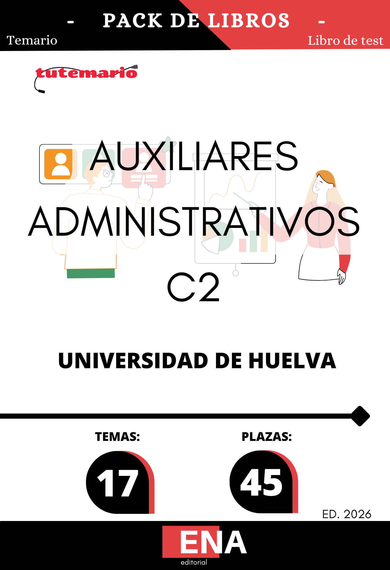 Vamos a desarrollar en este Pack de LIBRO TEMARIO y LIBRO DE TEST, con preguntas (DE CUATRO OPCIONES DE RESPUESTA), sobre los 17 temas solicitados para el estudio de la fase de oposición, para las 45 plazas del Cuerpo Auxiliar Administrativo de la Universidad de Huelva, convocadas